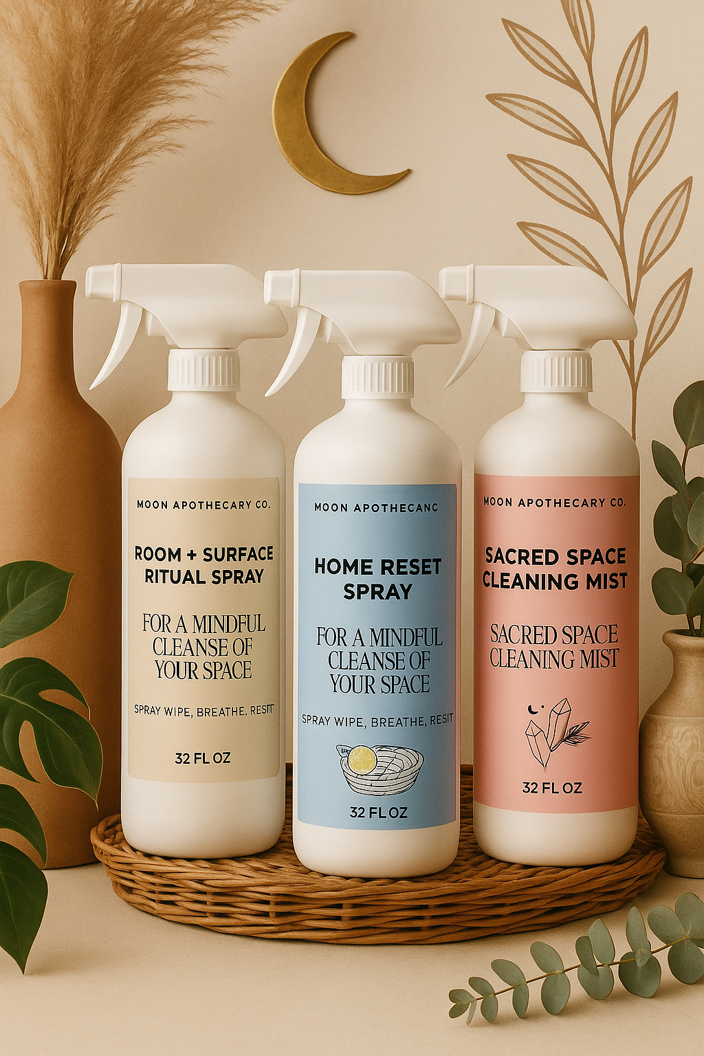 Transform your daily cleaning into a sacred ritual. ✨ Each Moon Apothecary spray is hand-crafted with plant-based ingredients, essential oils, and pure intention — designed to refresh your space while uplifting your spirit. Safe for kids, pets, and the planet, our sprays cleanse more than just surfaces — they cleanse energy.